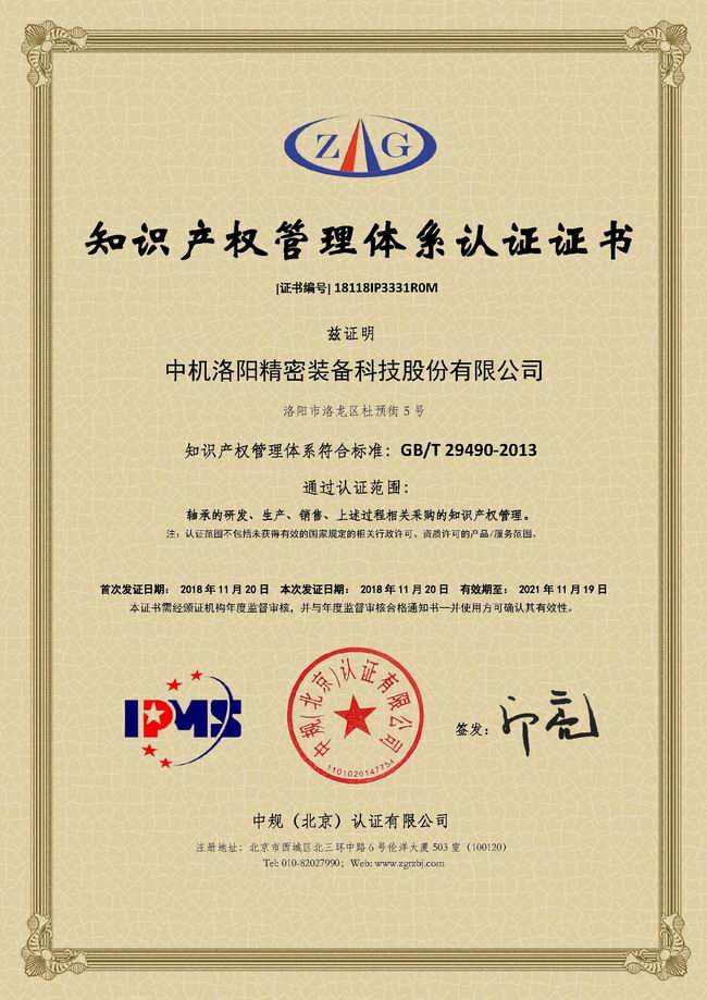 2018年11月12日至13日,中規(北京)認證有限公司工作人員到我公司進(jìn)行知識產(chǎn)權管理體系審查認證,經(jīng)過(guò)為期兩天的檢查與考核,對公司知識產(chǎn)權管理給予了肯定,最終頒發(fā)“知識產(chǎn)權管理體系認證證書(shū)”。